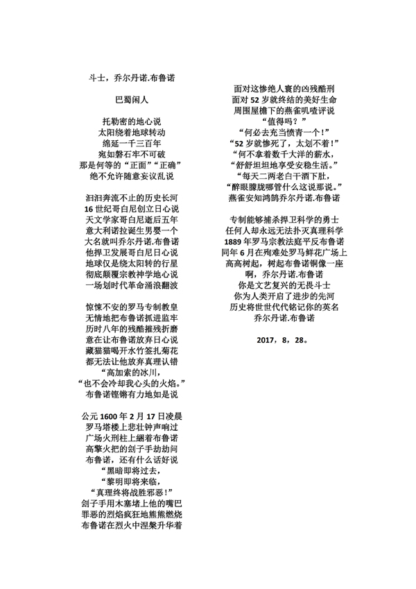 斗士,乔尔丹诺. 布鲁诺