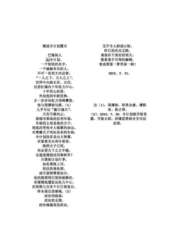 概述令计划覆亡